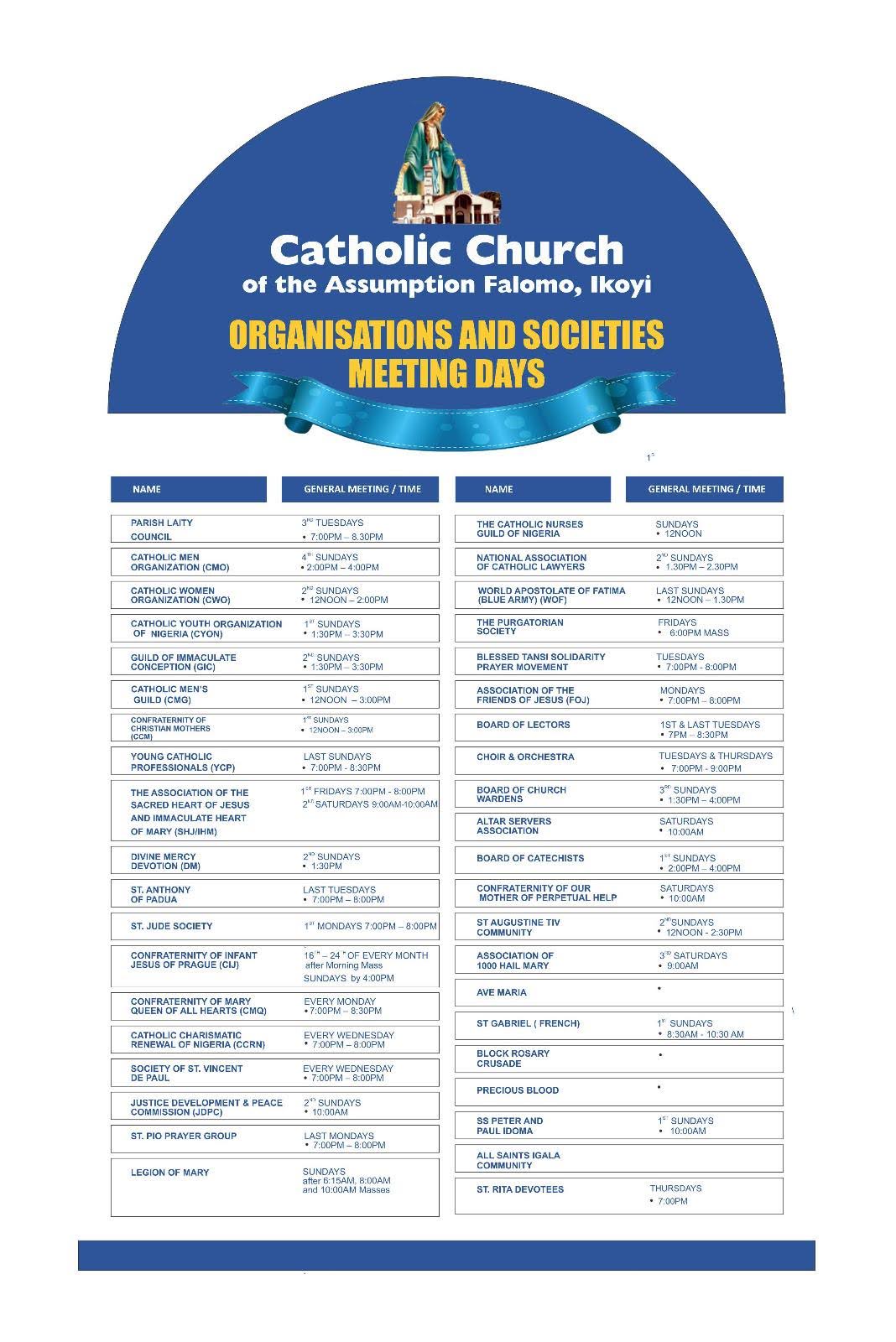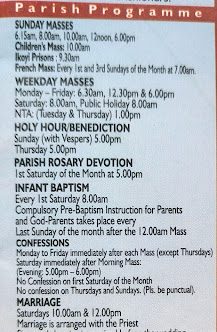 Saturday: Immediately after Morning Mass and Evening-5.00-6.00pm (Pls be punctual)